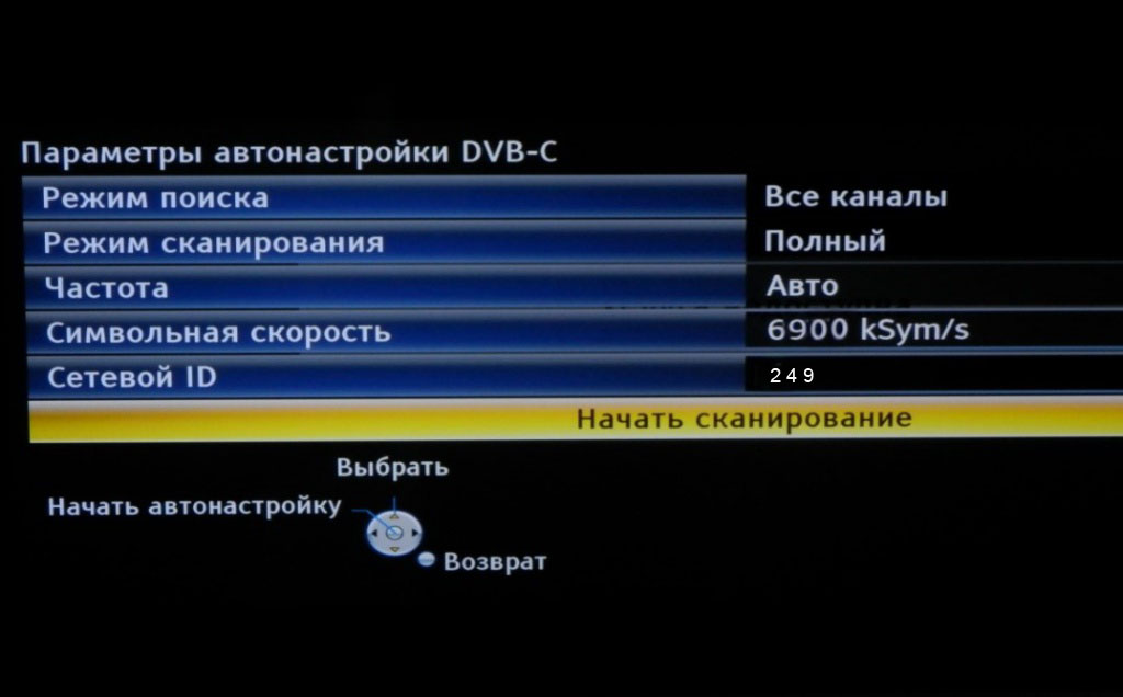 3. В следующем списке выберите «Меню настройки DVB-C»,